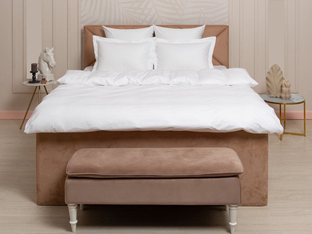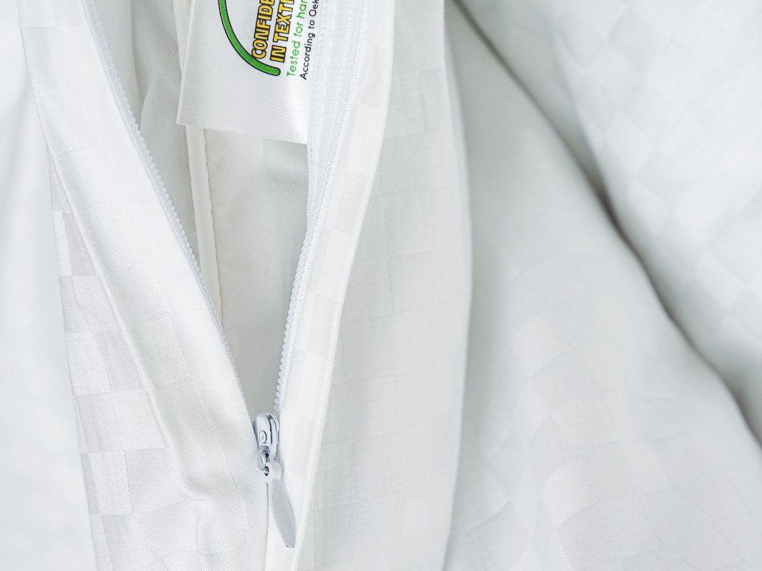 Простыня классическая, наволочки "оксфордские" с ушками на запахе (50x70), наволочки классические без декоративных элементов на запахе (70x70), пододеяльник с потайной молнией.