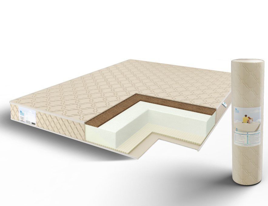 Начинкой для матраса служат сразу три вида наполнителей: натуральные койра и латекс, а также ортопедическая пена. Для пены здесь отведено больше всего места, поскольку именно она несёт основную нагрузку и распределяет приходящий вес. Кокосовая койра и латекс представлены прослойками по 1 см. Они придают поверхностям необходимые свойства – умеренную плотную жёсткость с одной стороны, а с другой – выраженную комфортную мягкость. Латекс обеспечивает поверхность анатомическими качествами, а койра – ортопедическими.