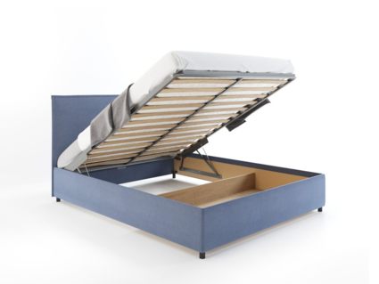 Каркас изголовья и царги кровати изготовлены из ДСП. Модель укомплектована подъемным механизмом с двумя газовыми амортизаторами. Опционально - кровать может быть укомплектована только металлическим основанием под матрас (без подъёмного механизма) или вовсе без основания и подъёмного механизма. Отсек для хранения постельных принадлежностей с вкладным полом на 1/2 кровати.