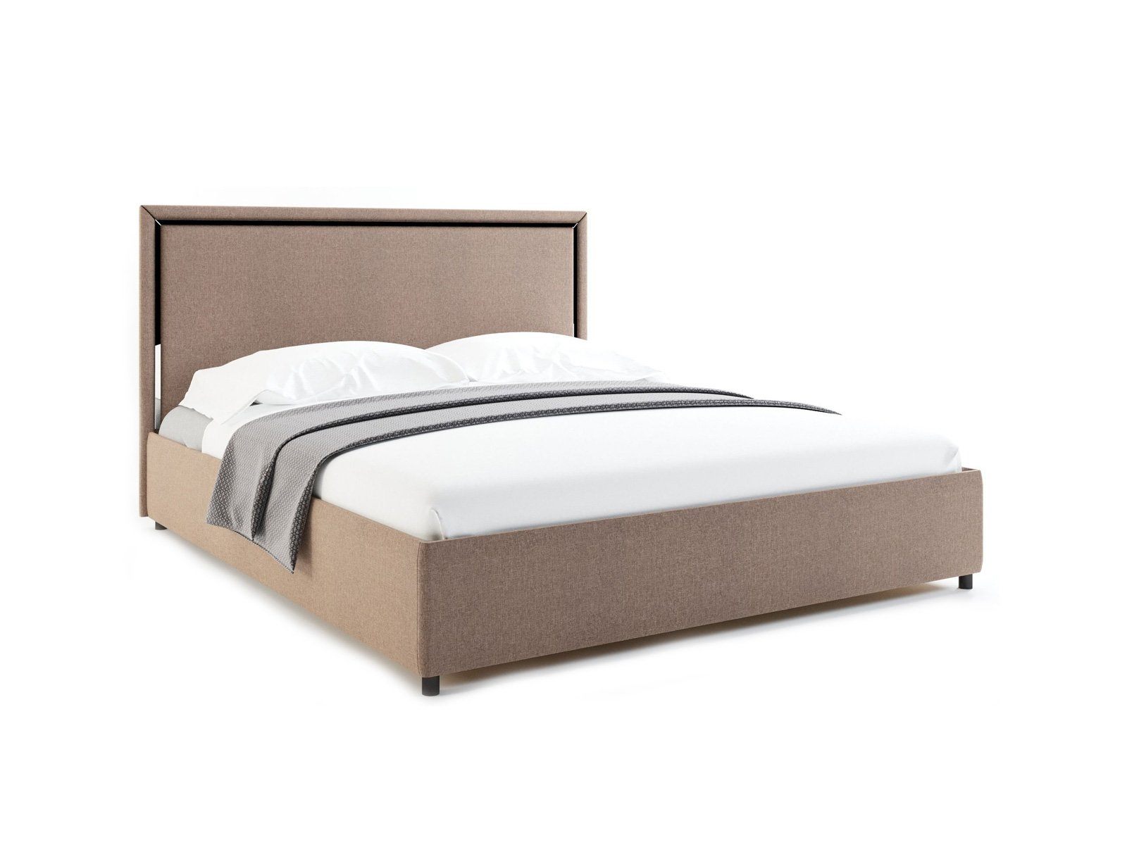 Спейс — кровать в современном стиле. Прямое мягкое изголовье украшено тонкой зеркальной вставкой по периметру.