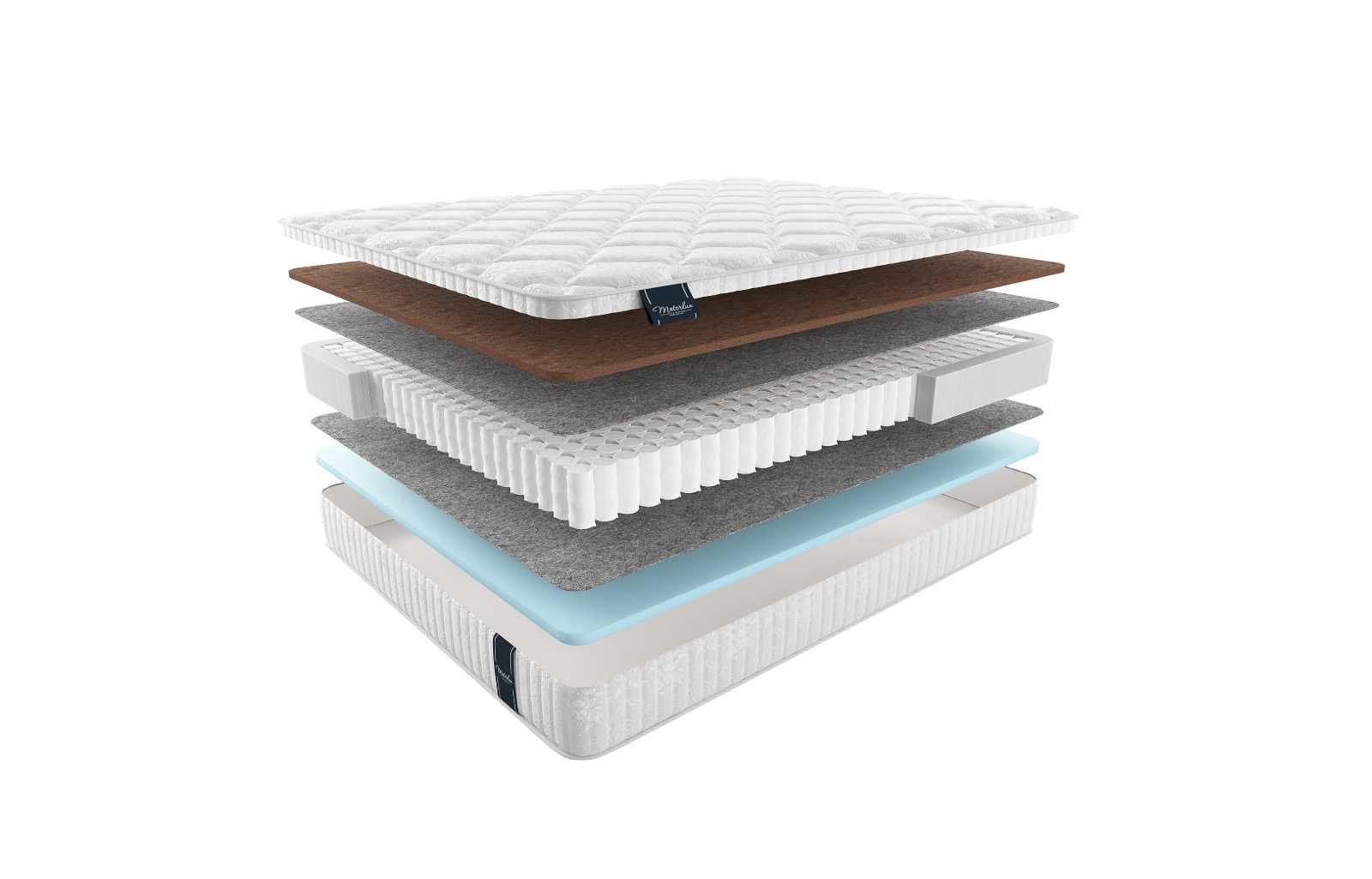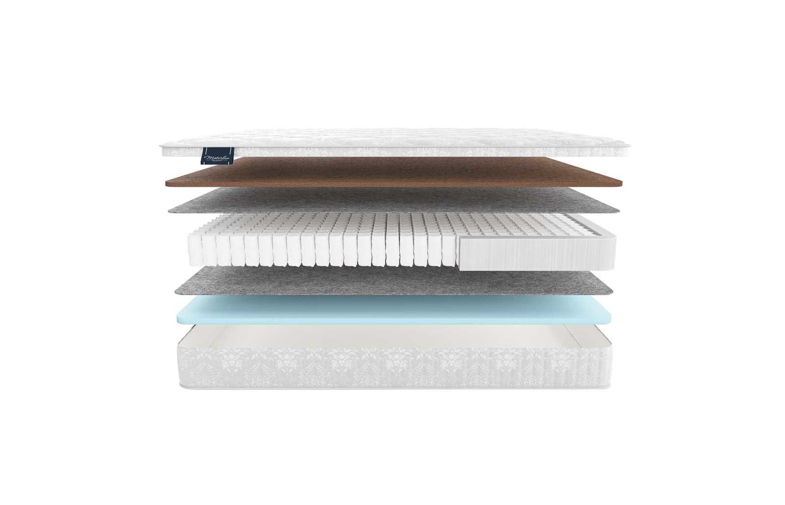 С каждой из сторон модели установлены разные наполнители. Более жёсткая поверхность реализована с помощью слоя кокосовой койры. Наполнитель изготавливается из прессованного волокна кокоса, а потому достаточно твёрд, но не лишён гибкости, благодаря тому, что залит латексным раствором. Эта же структура беспрепятственно пропускает свежий воздух внутрь материала. Так койра обладает не только ярко выраженной аэрацией, но и примечательным ортопедическим эффектом.