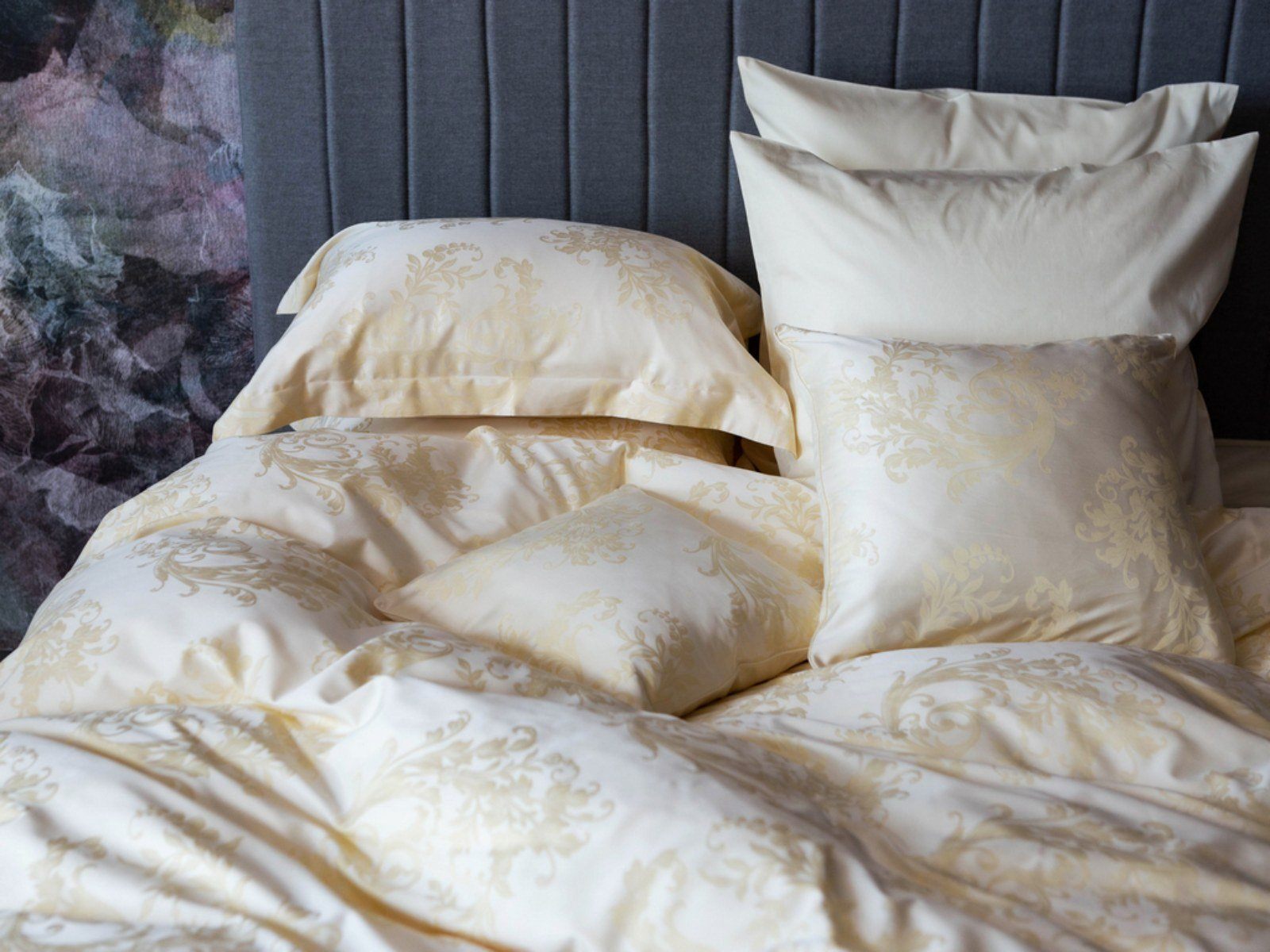 Постельное белье Golden Palette Grass — это, прежде всего, качественные натуральные жаккардовые ткани, при производстве которых используется дополнительное кручение пряжи. Благодаря этому приему постельное белье дольше сохраняет превосходный внешний вид и практически не мнется, а также дарит ощущение прохлады летом и уюта зимой. Комплекты сшиты из тканей "компаньонов" (двух видов: жаккардовый макосатин и гладкий сатин, 40% хлопок/60% TENCEL®.) одного цвета и имеют пододеяльник(и), простынь, и наволочки которые комплектуются в фирменную коробку с логотипом. Стирка при температуре до 40С°.