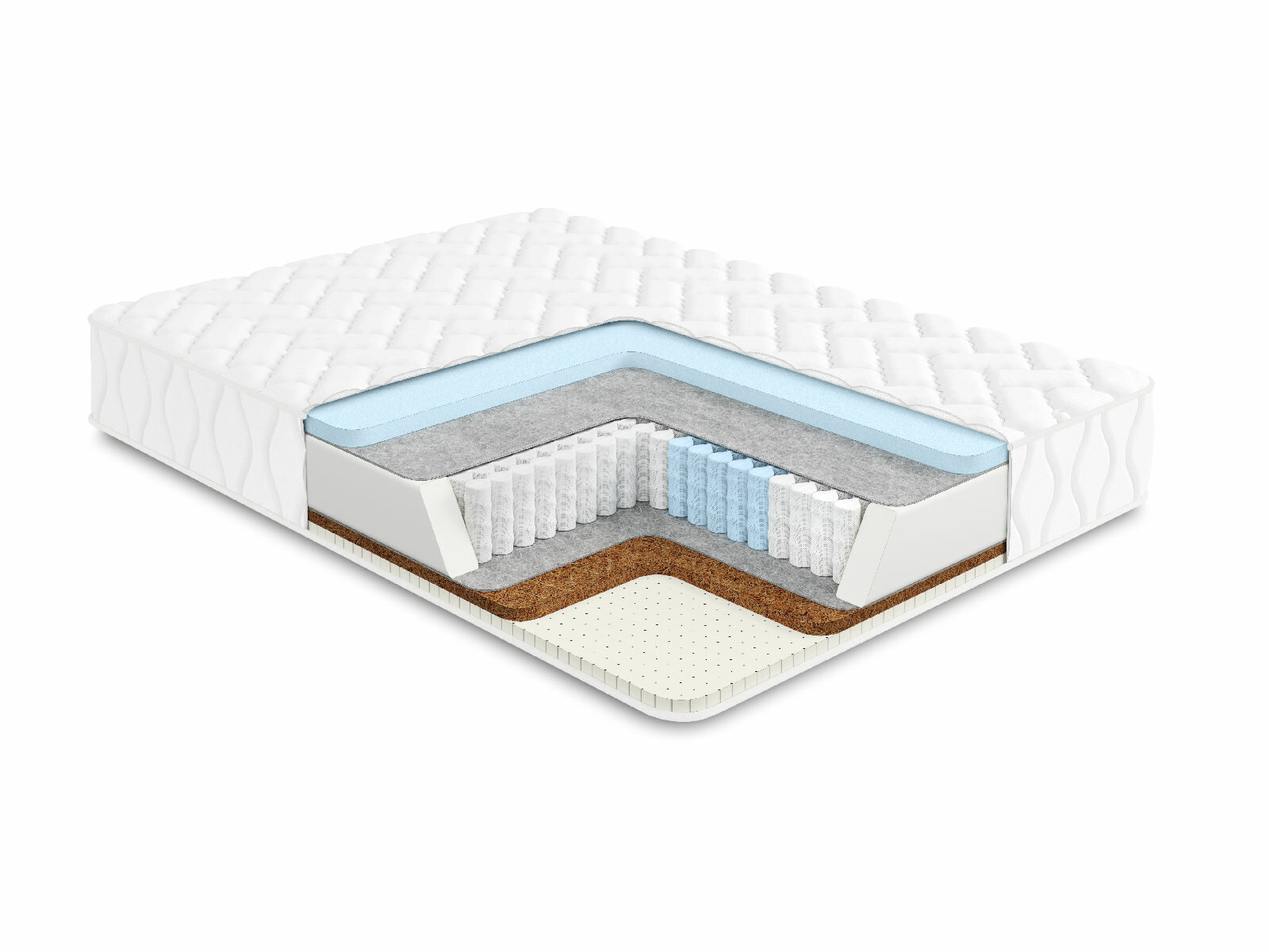 Натуральные латекс и кокос представляют одну из поверхностей изделия. Такая сторона высоко адаптивна и при этом оказывает корректную поддержку для спины. Это значит, что спать будет невероятно уютно и комфортно, благодаря тому, что латекс способствует глубокому расслаблению, и при этом ничто не нарушит вашей осанки, поскольку койра обеспечит должную поддержку.