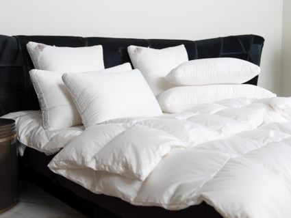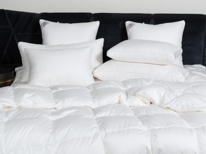 Немецкий хлопковый сатин высочайшей плотности соткан из тончайших нитей (Premium Satin – Nе 200/200 485 ТС) и прошел финишную обработку SanProCare® Sensitive, обеспечивающую усиленную гигроскопичность и придающую ей «пуховую мягкость». Особо тонкий, мягкий и «нешуршащий» чехол обладает повышенной износостойкостью и предотвращает проникновение пылевых клещей внутрь изделий. Наполнителем служит пух высочайшего качества, отобранный на гусиных фермах Сибири, которая, по утверждению биологов, является зоной проживания гусей, носящих пух максимально больших размеров, что, безусловно, влияет на пуховую массу положительно и наполнитель имеет повышенный коэффициент упругости (Fill Power), достигающий значений в 850 ед.