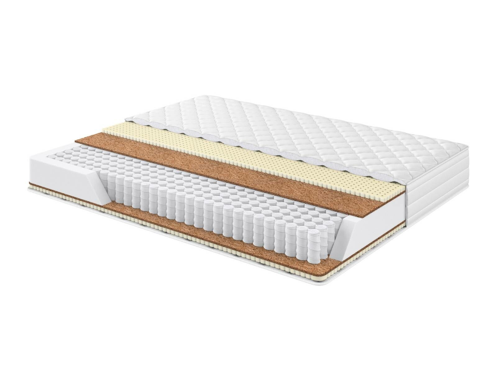 Экологически чистый латекс создаёт упругую прочную основу, а кокосовая койра придаёт матрасному блоку эластичности и жесткости. Это очень комфортные и экологические природные наполнители