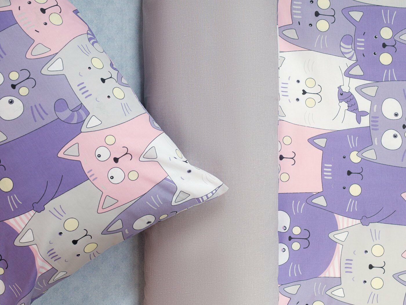 Пододеяльник –двусторонний: верх из ткани А (принтованная ткань), обратка из ткани В (однотонная рогожка), с потайной молнией.