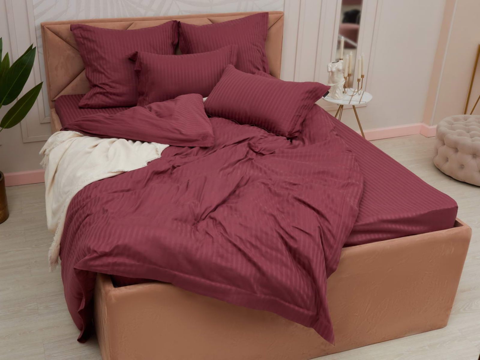 Постельное белье Моне, изготовленное из высококачественного страйп-сатина, станет украшением Вашей спальни. Комплекты представлены в 17 оттенках: от пастельных, до ярких насыщенных тонов. Такая палитра никого не оставит равнодушным. Особое плетение ткани образует узор в виде чередующихся полос, это придает постельному белью изысканность, гладкость и блеск.