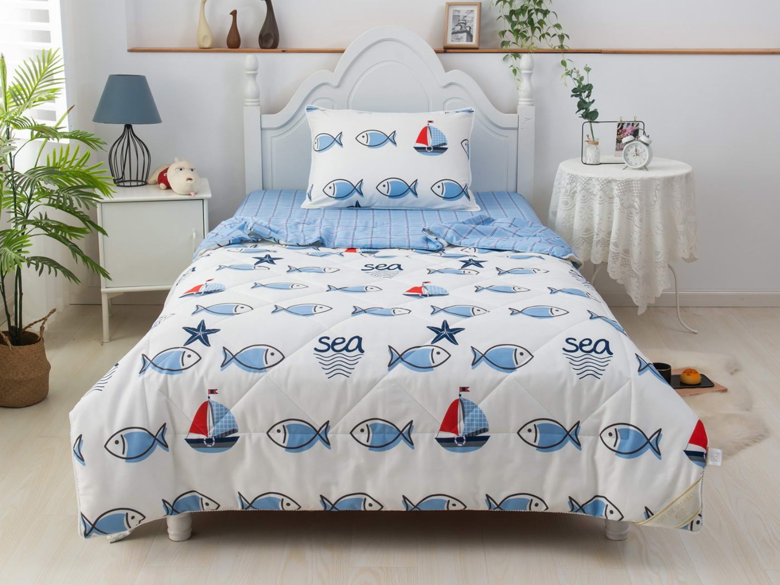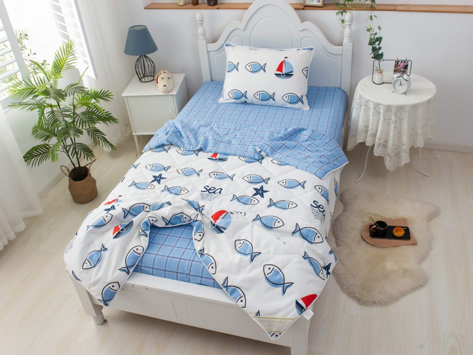 Интернет-магазин СОН.РУ предлагает купить постельное белье с доставкой по Клину . Комплект постельного белья Софи де Марко Морские рыбки с одеялом 1,5-спальный размера 1,5-спальный стоит 15 120 ₽ . На товар действует скидка в размере %. Если у вас есть вопросы по гарантии, доставке и оплате, задавайте их менеджерам нашего кол-центра по телефону: 8 495 545-47-33 .