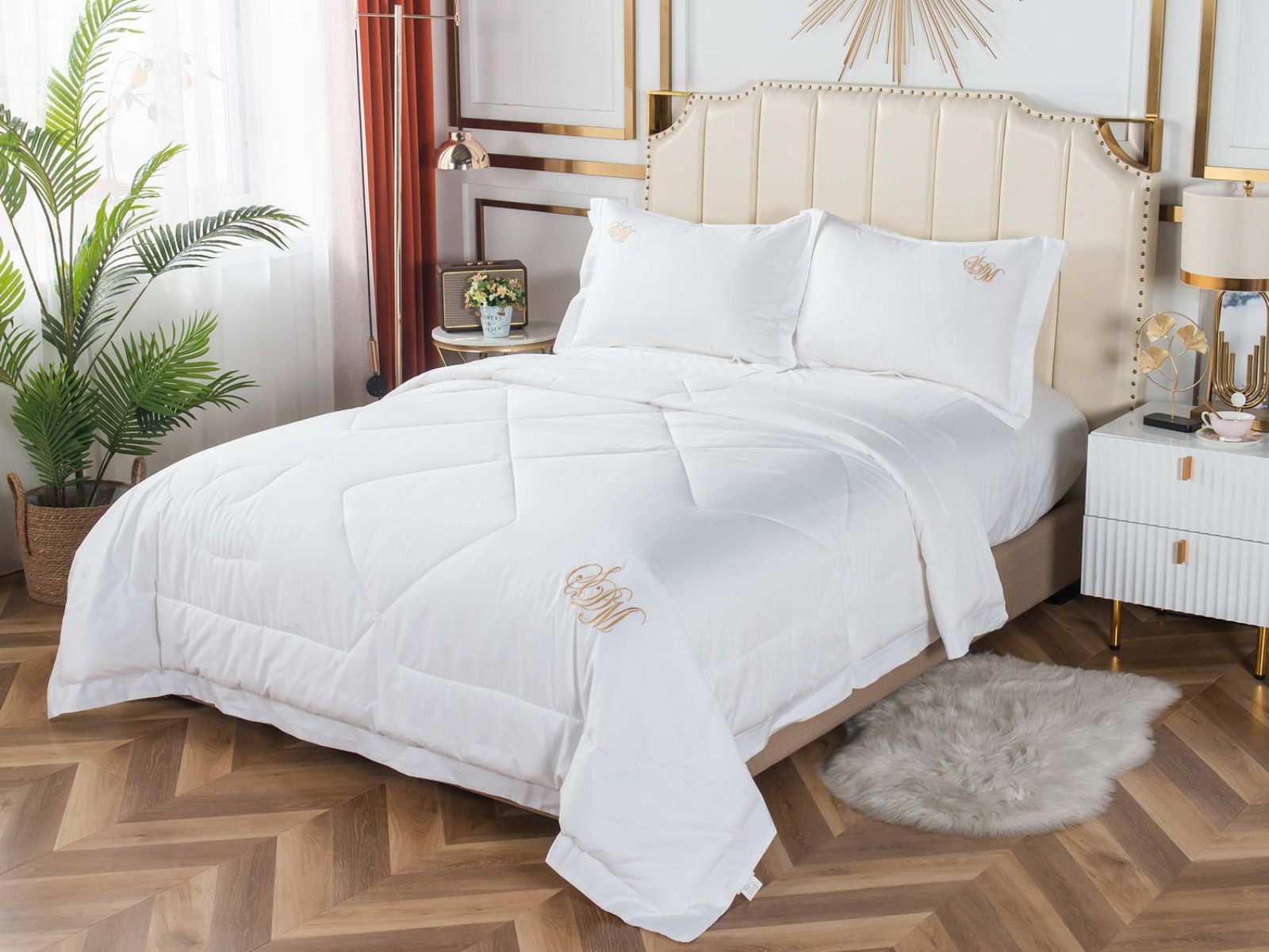 Элегантные комплекты постельного белья с одеялом премиум класса из нежной, натуральной ткани макосатин Нельсон. Этот материал обладает рядом важных качеств: он прочный, но мягкий, гладкая поверхность придает постельному белью красивый внешний вид. Натуральная ткань не вызывает аллергии и раздражения, такое постельное белье приятно использовать в любое время года, и в жару, и в холод.