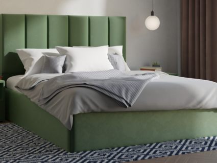 Мягкая кровать с обивкой из велюра.