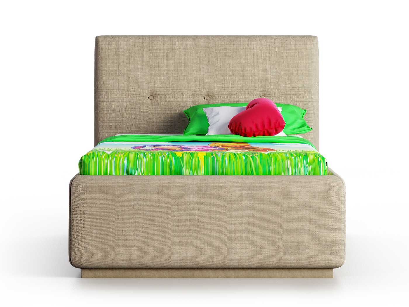 Кровать укомплектована IQ с подъемным механизмом и ящиком для белья без дна (дополнительная платная опция - дно к ящику IQ из HDF (ХДФ). Каркас кровати на цоколе, декоративный чехол на цоколе съёмный. Глубина ящика для белья - 30 см, без ограничения нагрузки на ящик.