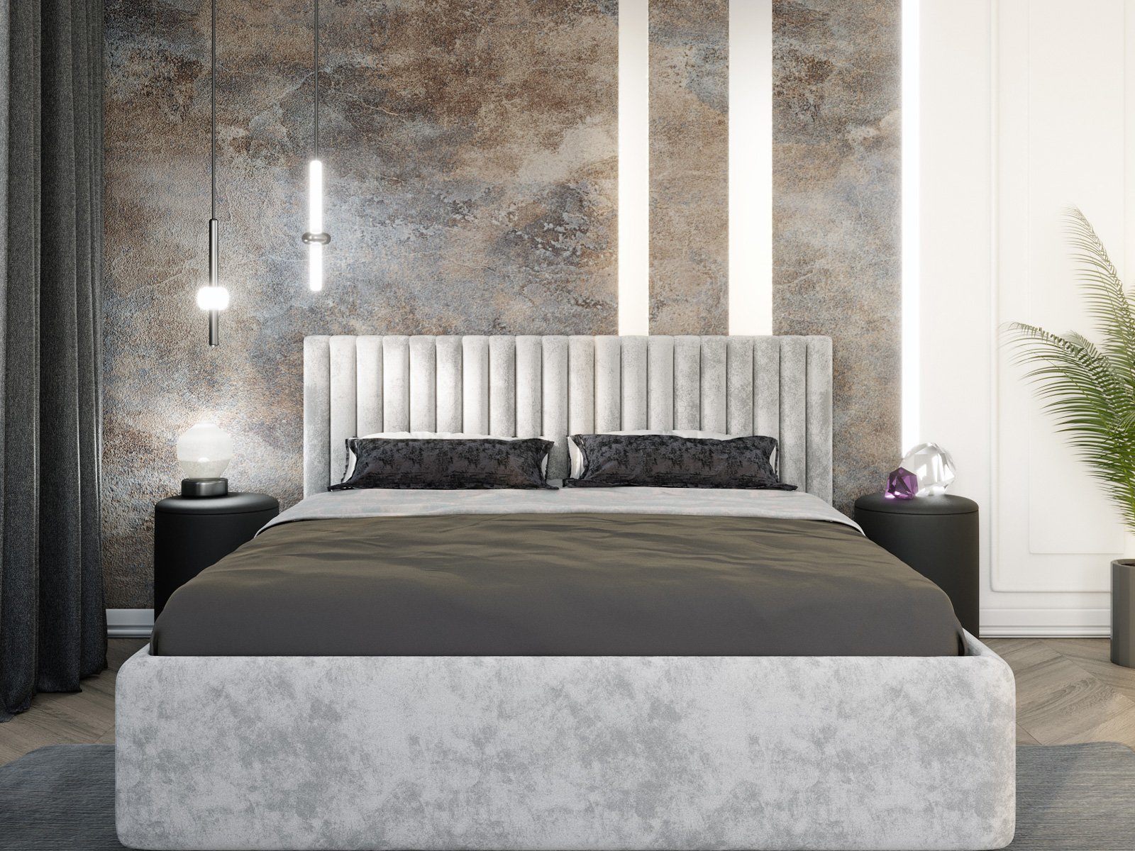 Кровать Fiore (Фиоре) с четкими параллельными утяжками (ширина утяжки всегда 10 см, независимо от размера спальго места) – красота, качество, комфорт! Сдержанная мягкая кровать Фиоре - идеальный выбор для Вашей спальни, оформленной в современном стиле.