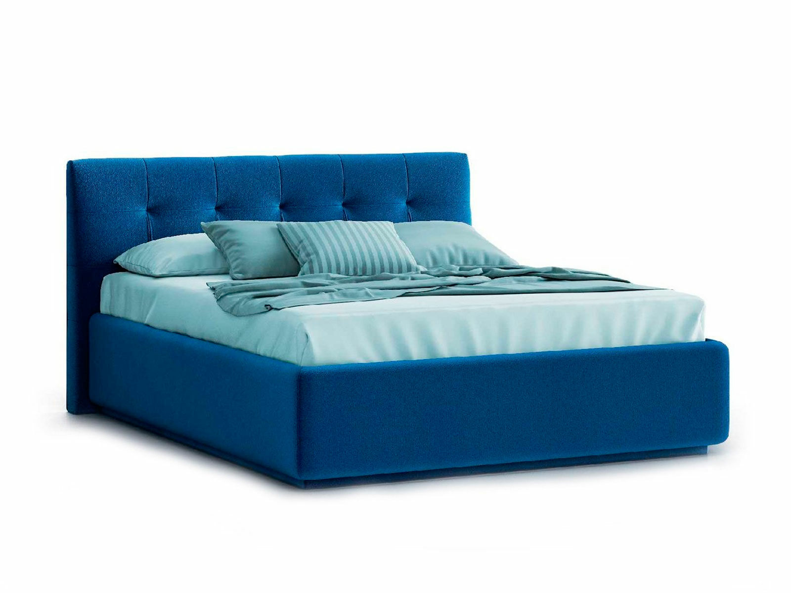 Кровать укомплектована IQ с подъемным механизмом и ящиком для белья без дна (дополнительная платная опция - дно к ящику IQ из HDF (ХДФ). Каркас кровати на цоколе, декоративный чехол на цоколе съёмный. Глубина ящика для белья - 30 см, без ограничения нагрузки на ящик.
