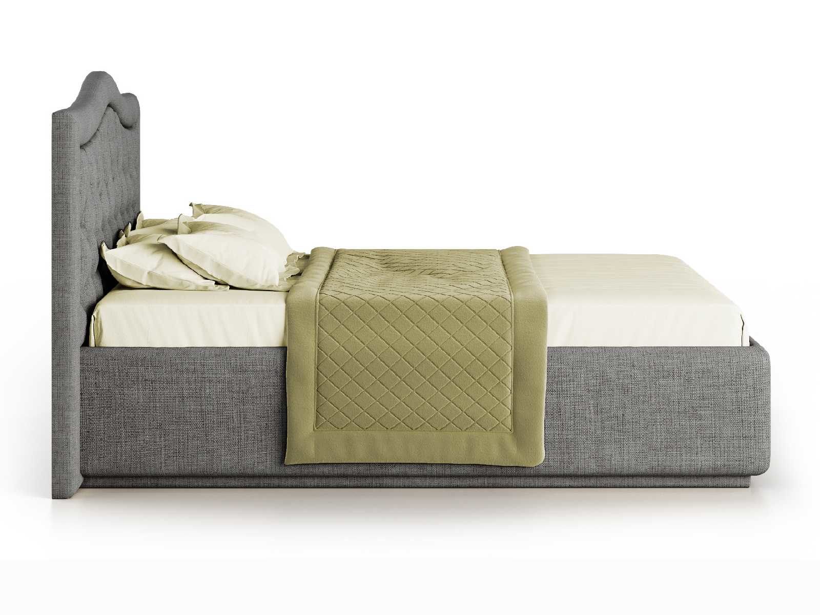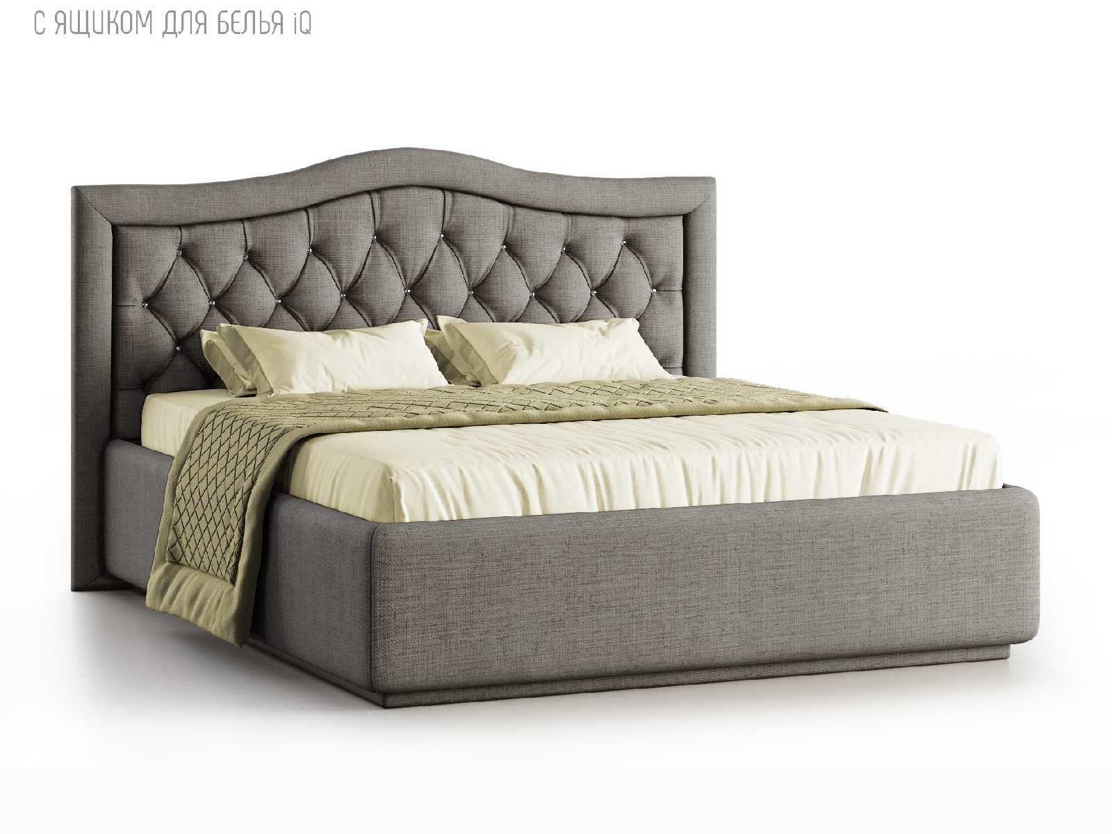 Кровать укомплектована IQ с подъемным механизмом и ящиком для белья без дна (дополнительная платная опция - дно к ящику IQ из HDF (ХДФ). Каркас кровати на цоколе, декоративный чехол на цоколе съёмный. Глубина ящика для белья - 30 см, без ограничения нагрузки на ящик.
