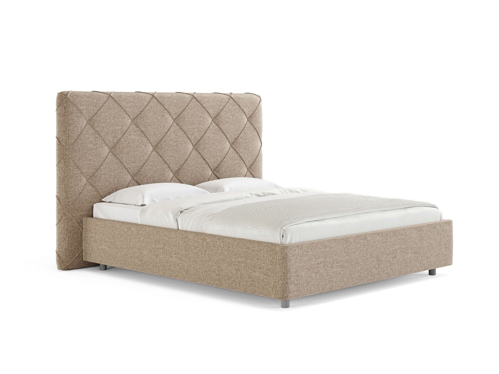 Современная интерьерная кровать. При необходимости, возможно установить подъемный механизм с бельевым ящиком. Ножная царга кровати скругленная по углам, что обеспечивает более элегантный внешний вид.