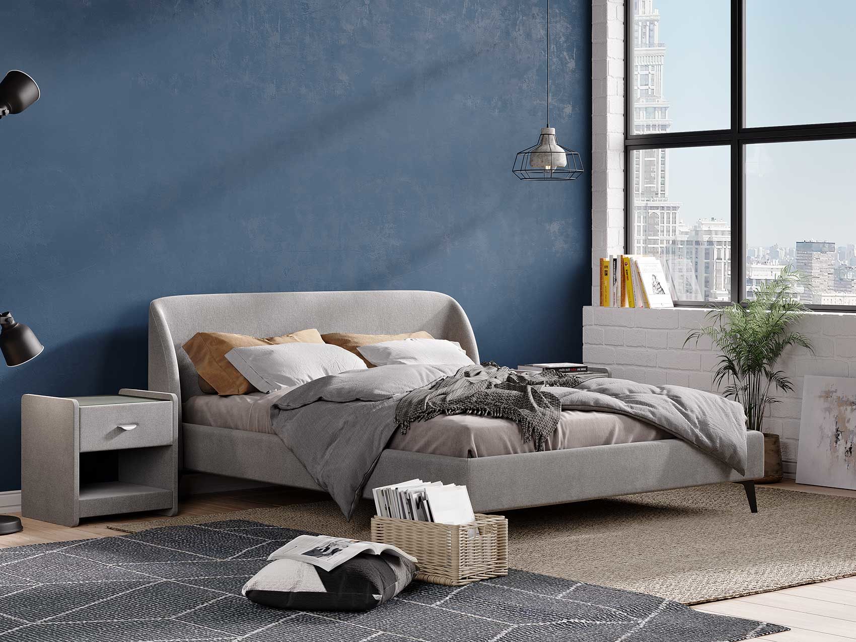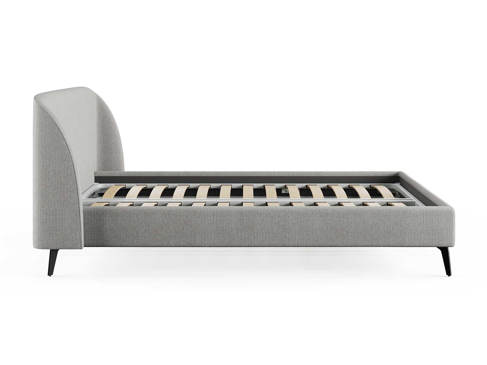 Кровать с закругленным изголовьем делает спальное место особенно уютным. Ее дизайн удачно подойдет для интерьеров в современном стиле, стиле минимализм и стиле mid-century модерн. Спинка кровати выполнена в основной ткани, благодаря этому ее можно установить в центре комнаты. Узкие царги и стильные металлические ножки делают кровать легкой и лаконичной. Кант на изголовье выступает в качестве декора, подчеркивает ее выразительность. Увеличенная прочность кровати достигается за счет металлического каркаса по периметру. Расстояние от пола до царг способствует легкой уборке под кроватью, в том числе роботом – пылесосом.