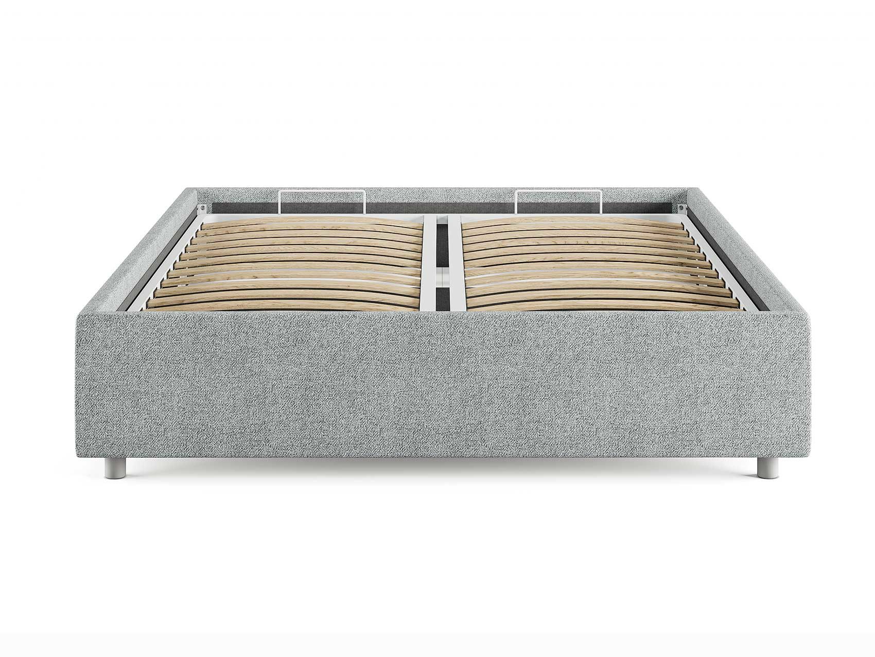 Кровать комплектуется металлическим основанием (без опор), которое имеет 13 рядов встроенных березовых ламелий на каждое спальное место, обеспечивая равномерное распределение нагрузки.