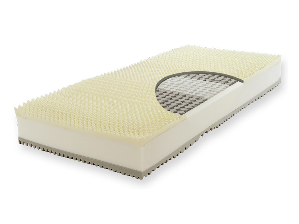 В основе - материалы последнего поколения без свинца и формальдегидов: базовый слой - независимые пружины микропакет (1428 пружин на 1 спальное место) высотой 14 см и анатомический слой с микромассажным эффетом (около 4 см) с каждой стороны. Благодаря микро-шипикам - одна сторона матраса лучше вентилируется и ослабляет давление, оказываемое матрасом на тело. Матрас рекомендован людям с заболеваниями кровообращения, варикозным расширением вен и др.