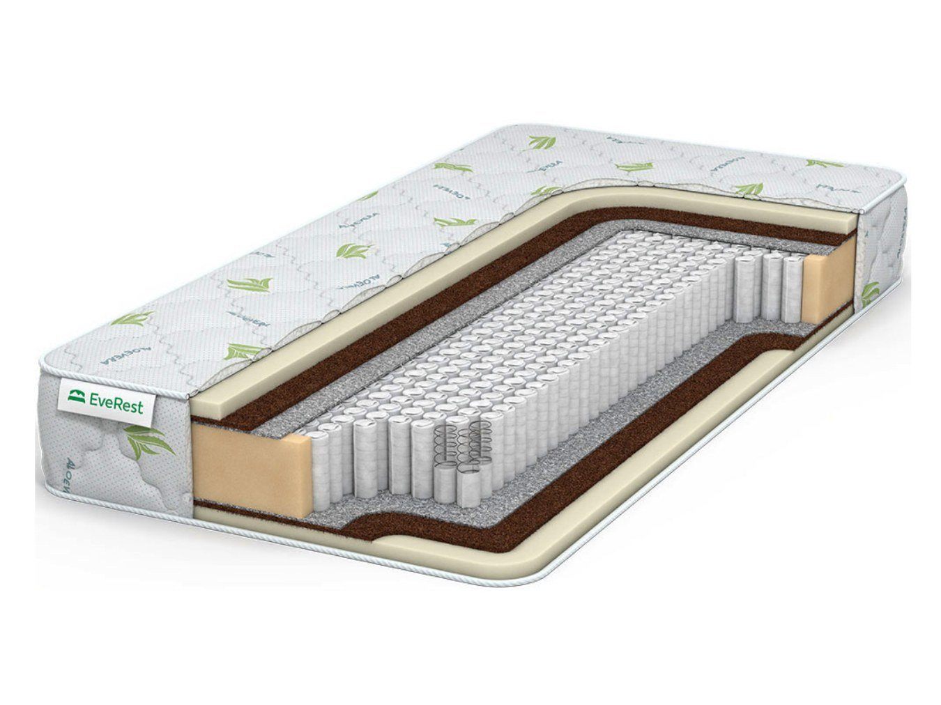 Объёмное покрытие матраса получило красивую стёжку. Трикотажная ткань обивки проходит антибактериальную пропитку экстрактом Алоэ Вера.