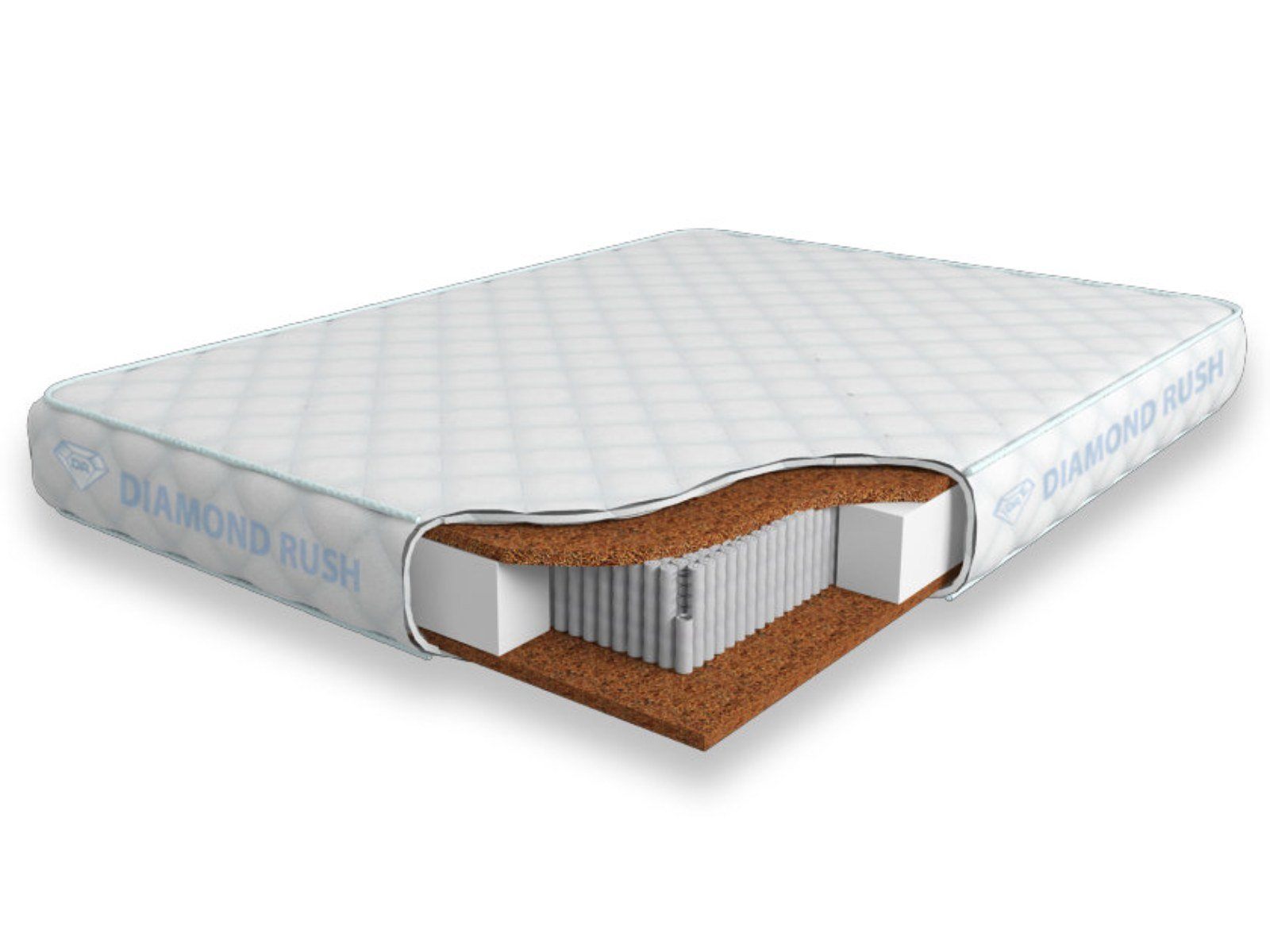 Данный матрас из серии Luxury Diamond имеет в своей основе независимый пружинный блок 3000, состоящий из пружин диаметром 2-3 см. В качестве настилочных слоев поверх пружинного блока используются листы толщиной 2см латексированной кокосовой койры. Это один из самых жестких материалов, однако он позволяет в полной мере ощутить на себе ортопедический эффект от пружинного блока.