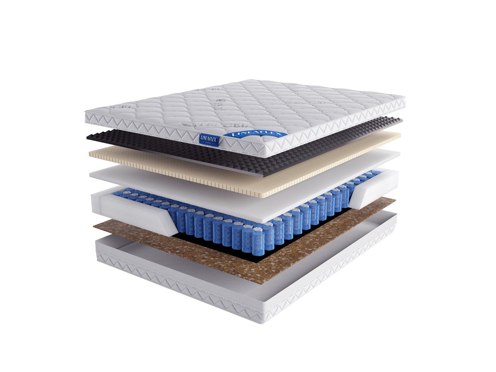 Высокий – 26 см и очень прочный матрас LineaFlex Inter Active выдерживает давление до 160 кг на спальное место. Модель получила сложное наполнение и включает в свой состав пены, слой койры, а также независимый пружинный блок.