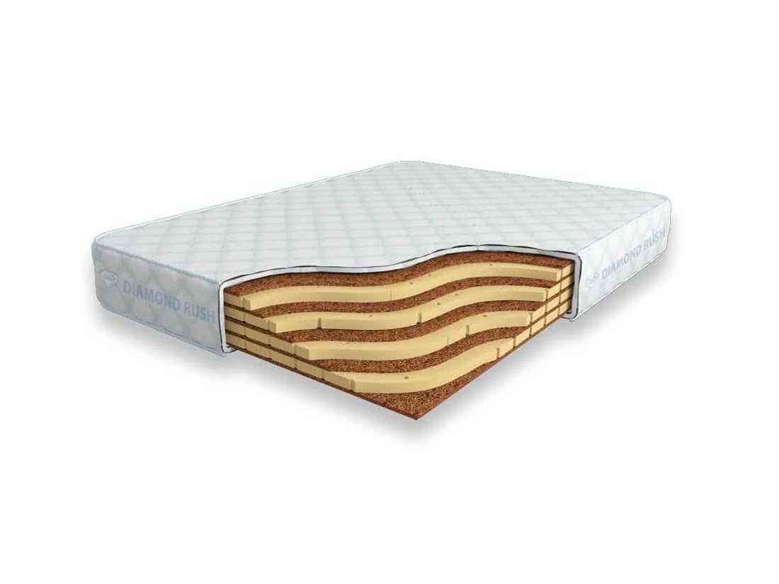 Матрас Diamond Rush Mono Mix Cocos 17 DR является беспружинным, т.е. не имеет в своей основе пружинного блока. В его состав входят одно или несколько чередований слоев латексированной кокосовой койры (1см) и натурального латекса с перфорацией (3см). Такая модель матраса относится к среднежестким и обладает ортопедическим эффектом.