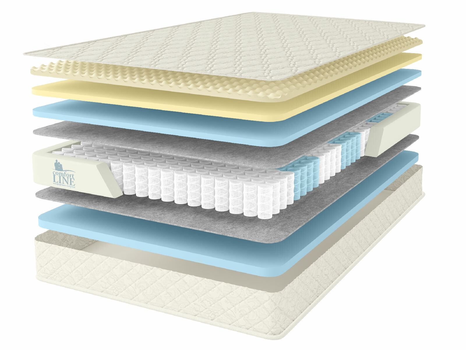 Пружинный матрас в основе которого многозональный независимый пружинный блок 1000 пружин на спальное место обеспечивает ортопедическую поддержку и комфорт во время сна. Независимые пружины подстраиваются под формы человека, потому что каждая пружина находится в отдельном кармашке и обеспечивает равномерное распределение веса.