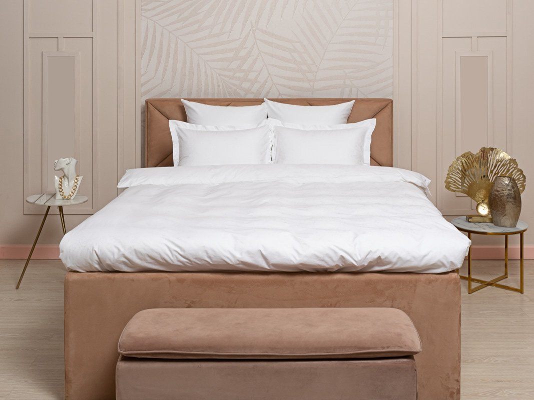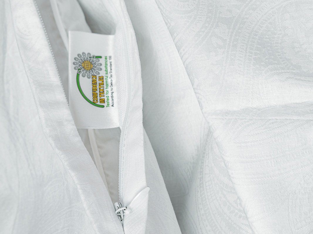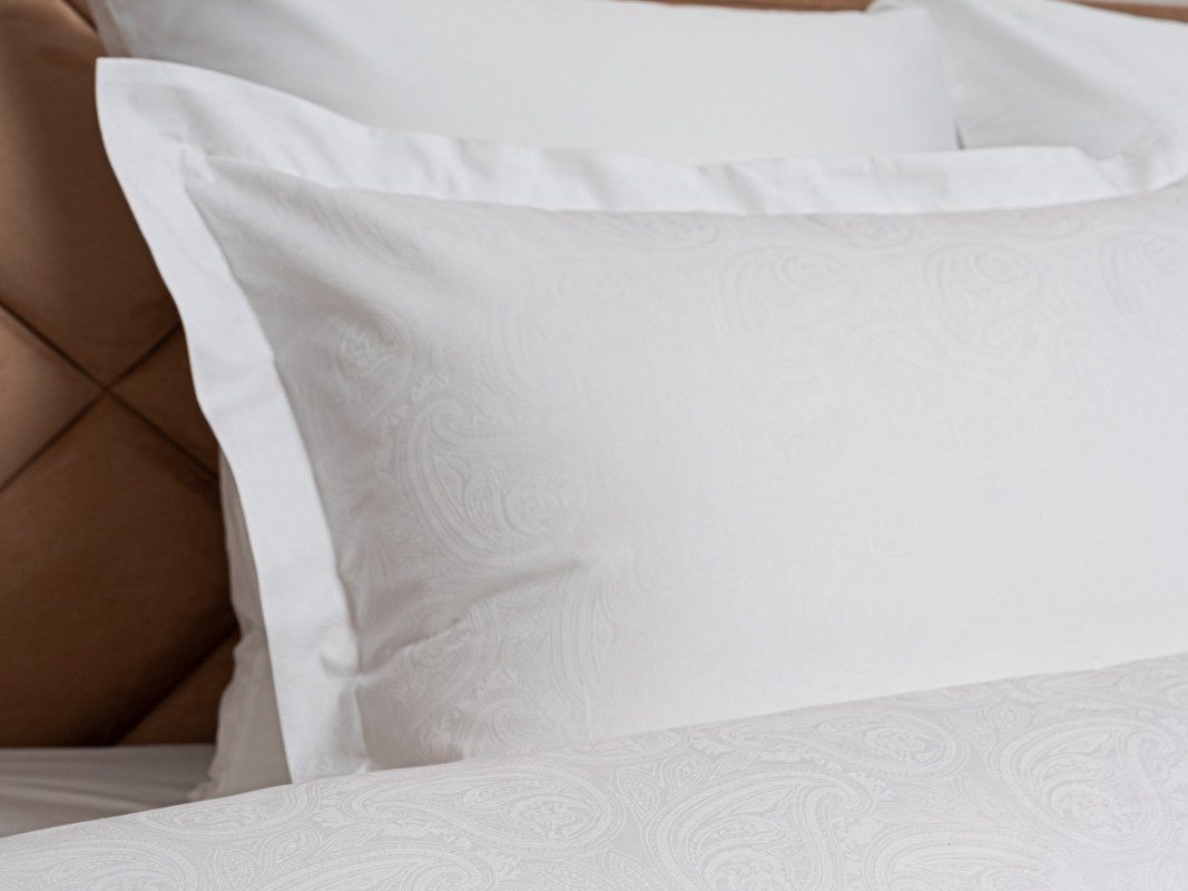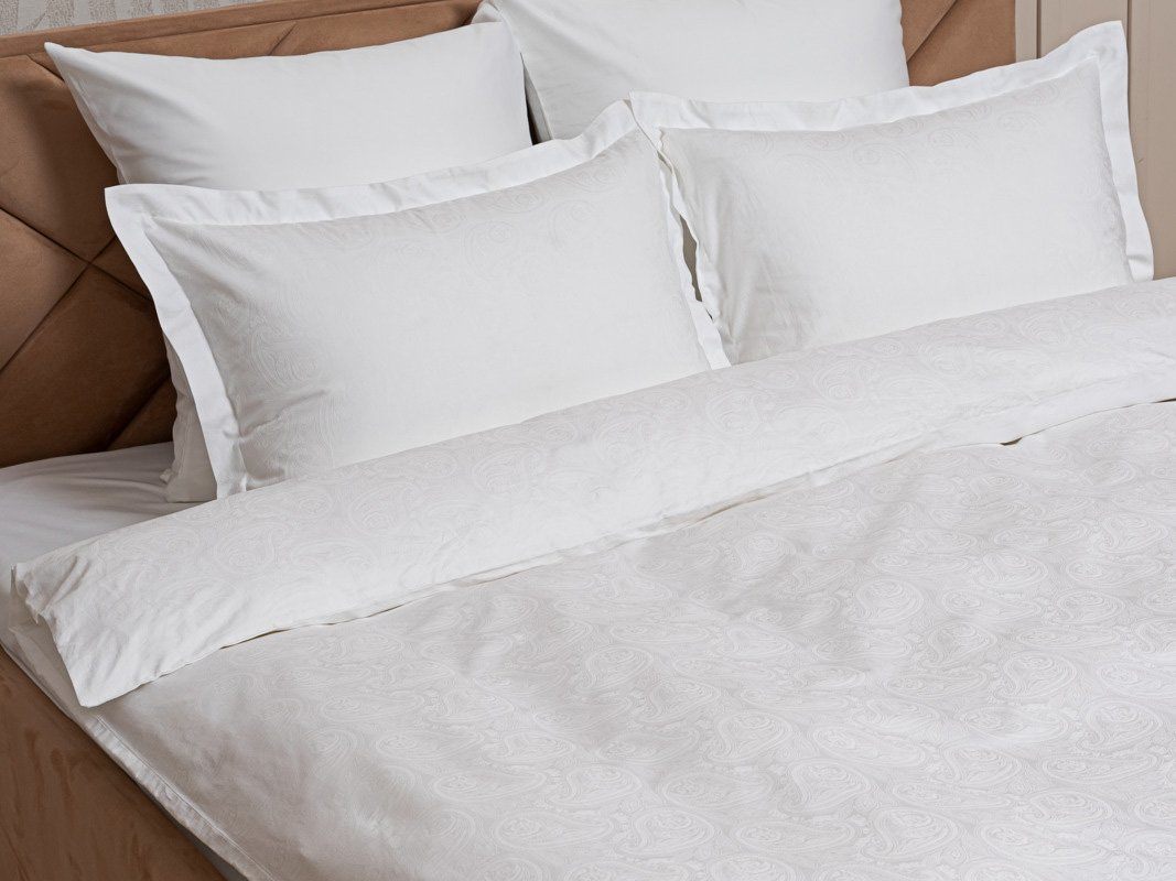 Простыня классическая, наволочки "оксфордские" с ушками на запахе (50x70), наволочки классические без декоративных элементов на запахе (70x70), пододеяльник с потайной молнией.