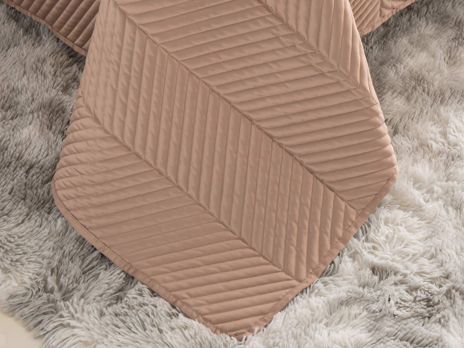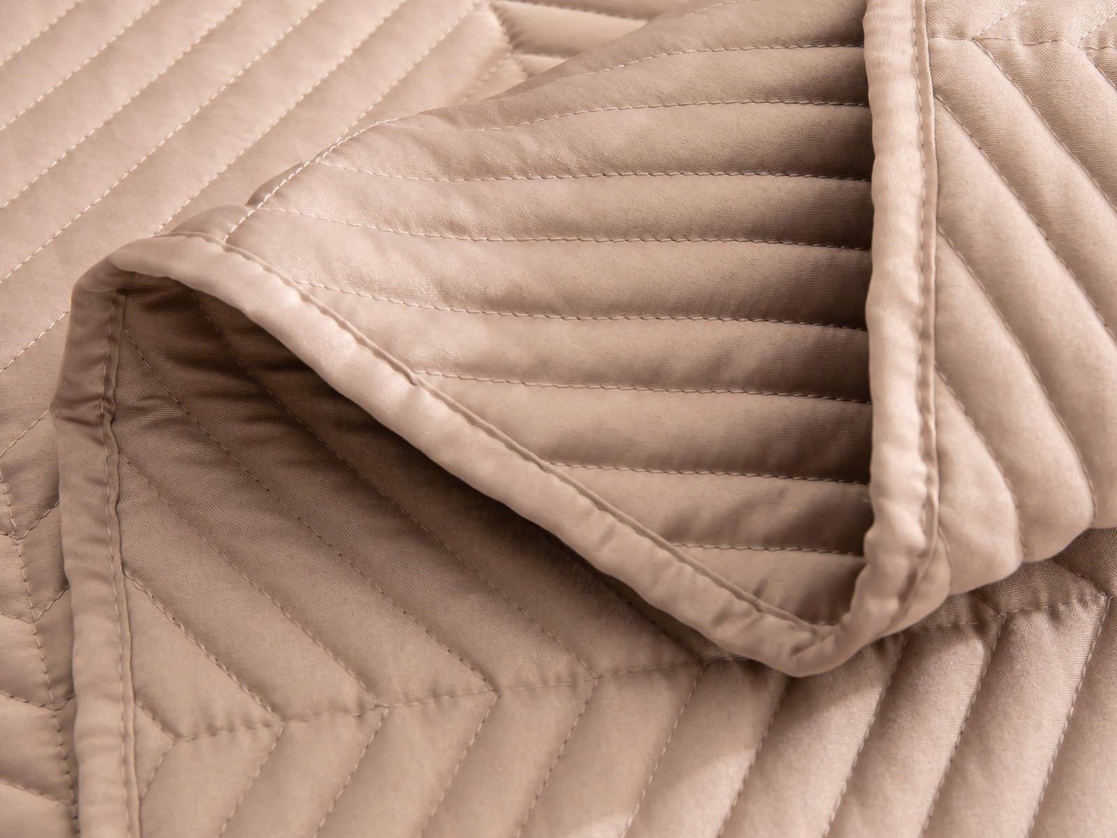 Стёганое дышащее покрывало Адонис на 70% состоит из хлопка и на 30% из вискозы. Ткань изделия гладкая и приятная на ощупь. Декоративный кант и ритмичный «елочный» рисунок, выступающий над поверхностью, придают покрывалу игривый утонченный вид.
