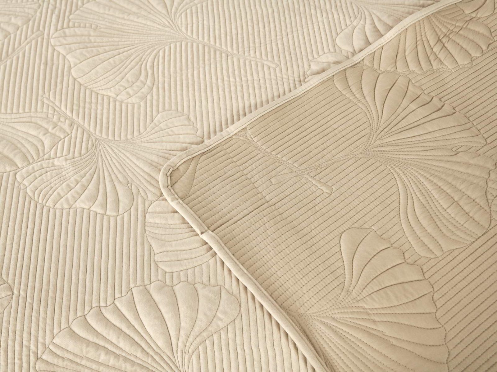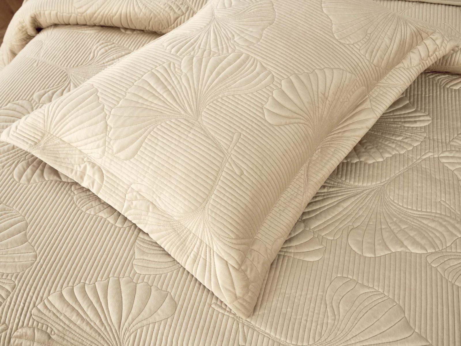Роскошный растительный орнамент в виде вышивки добавит Вашей спальне элегантности и изысканности. Текстура цветочного узора будет сочетаться с другими элементами интерьера, такими как шторы, подушки, ковры и т.д.