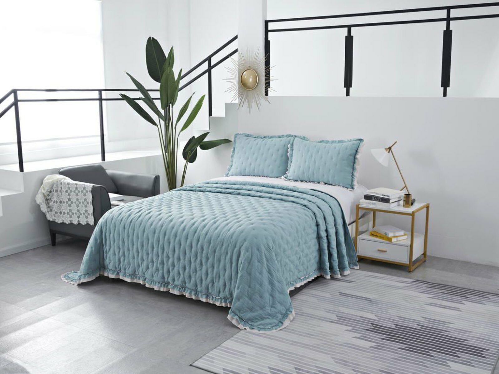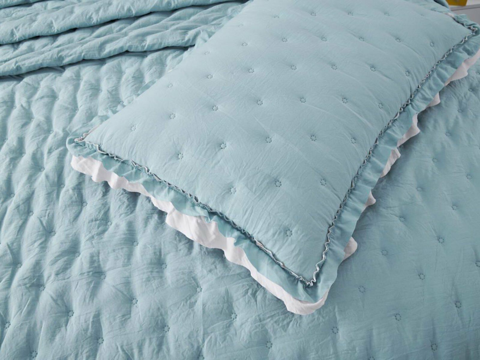 Покрывала выполнены в десяти оттенках, они подойдут для различных интерьеров, объединяет коллекцию потрясающее качество и приятный внешний вид. Изделия декорированы рюшами по краю, что подчеркивает из красоту и изысканность.