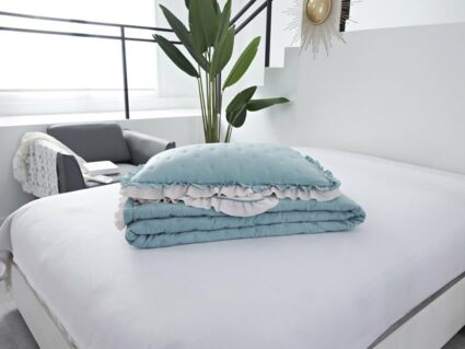 Двусторонние стеганные покрывала Элизабет выполнены из вискозы и хлопка, они легкие и прочные. В комплекте с покрывалом идут две наволочки, вы можете использовать покрывало по назначению, либо в качестве постельного белья. В любом случае, вы будете в восторге от этого комплекта!