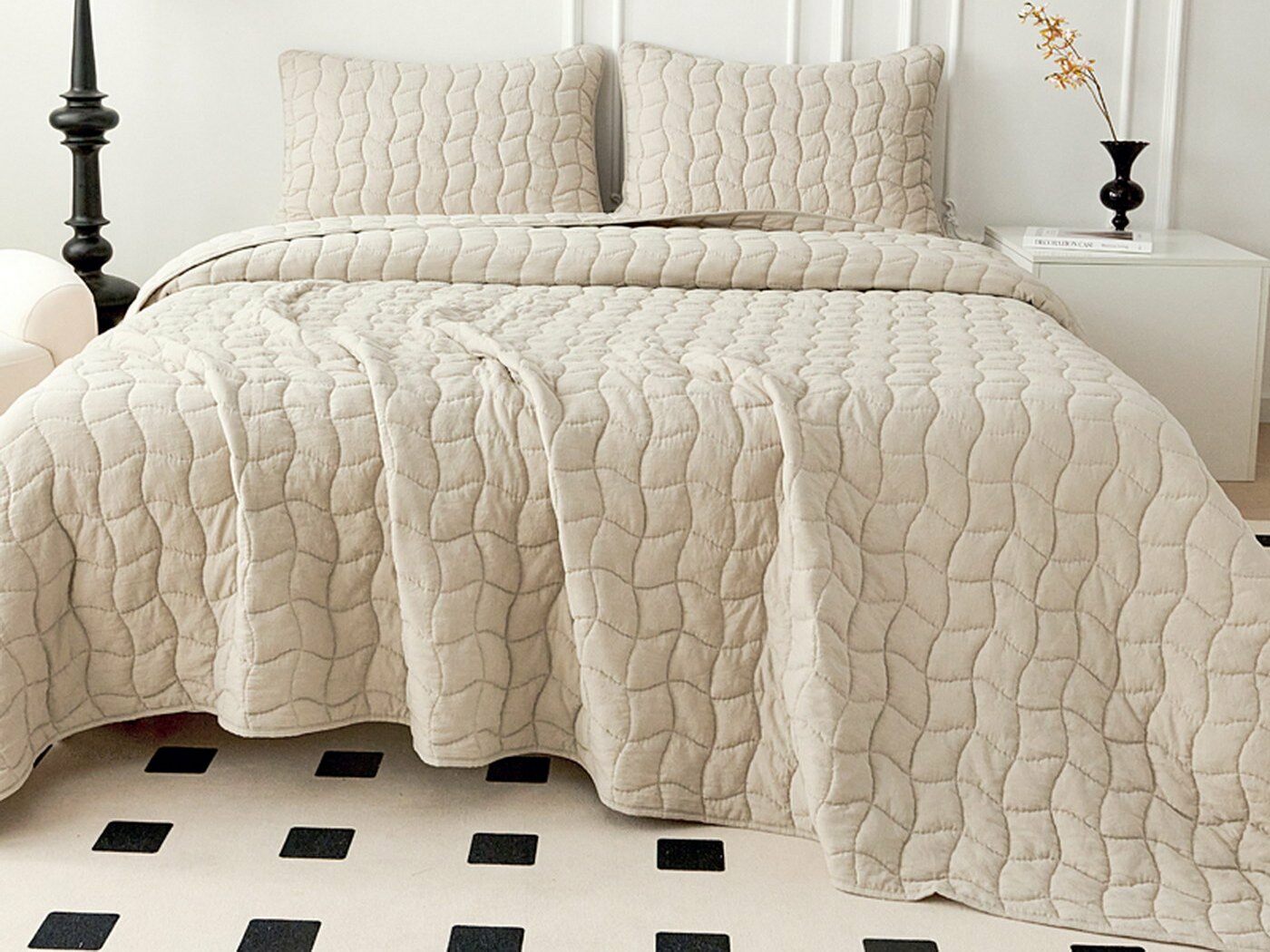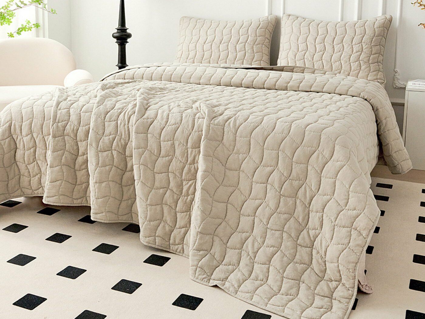 Покрывала и наволочки выполнены с кантом. Стежка двойной нитью под цвет покрывала.