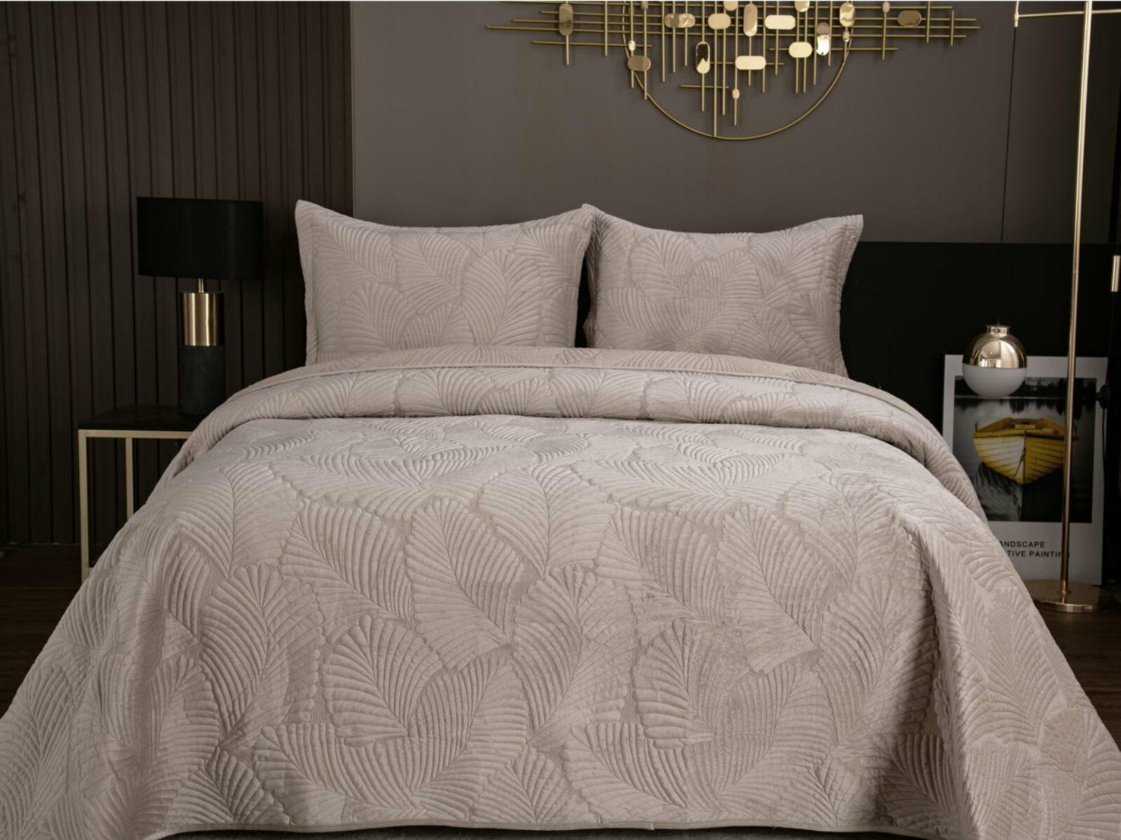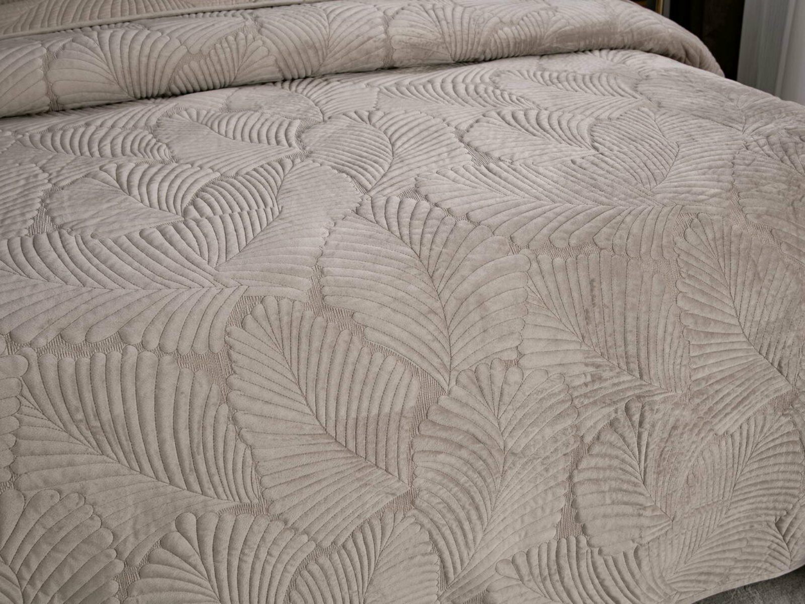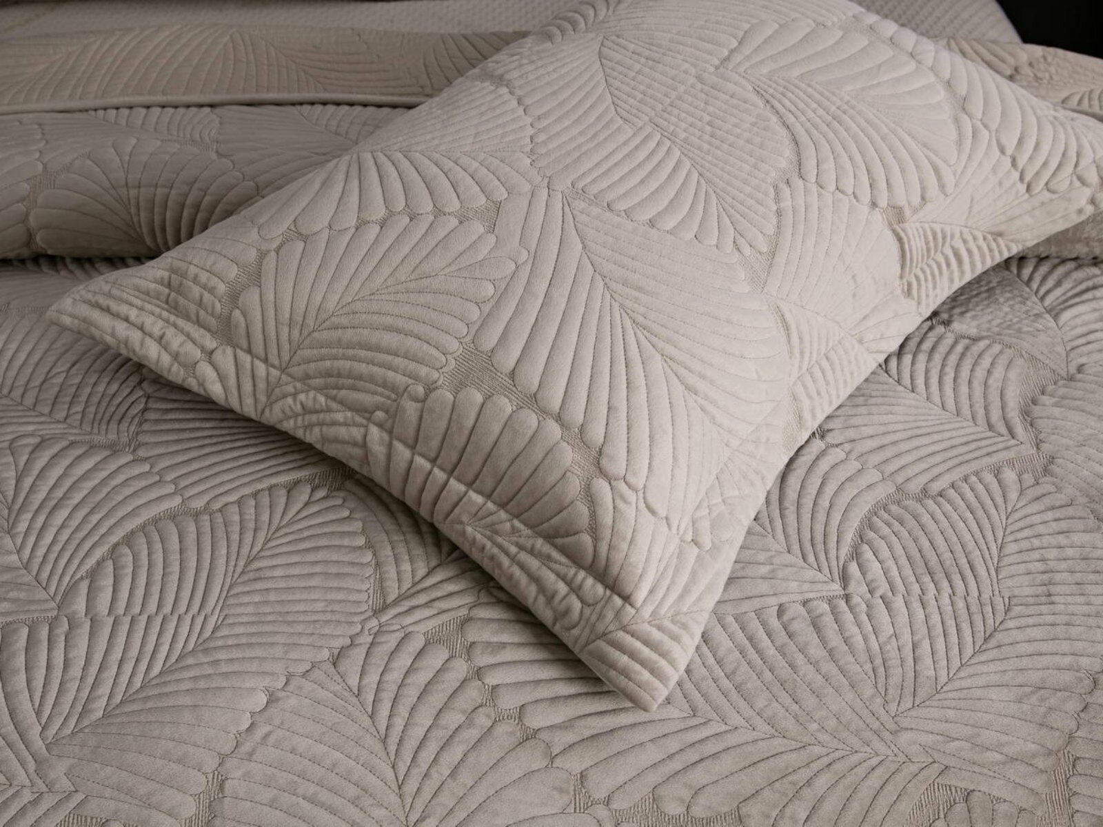 На создание велюрового покрывала Ноэль наших дизайнеров вдохновила ночь в середине лета, когда на раскаленную от жары землю спускается долгожданная прохлада. Роскошная вышивка в виде пальмовых листьев будет напоминать о тени, которую отбрасывают деревья.