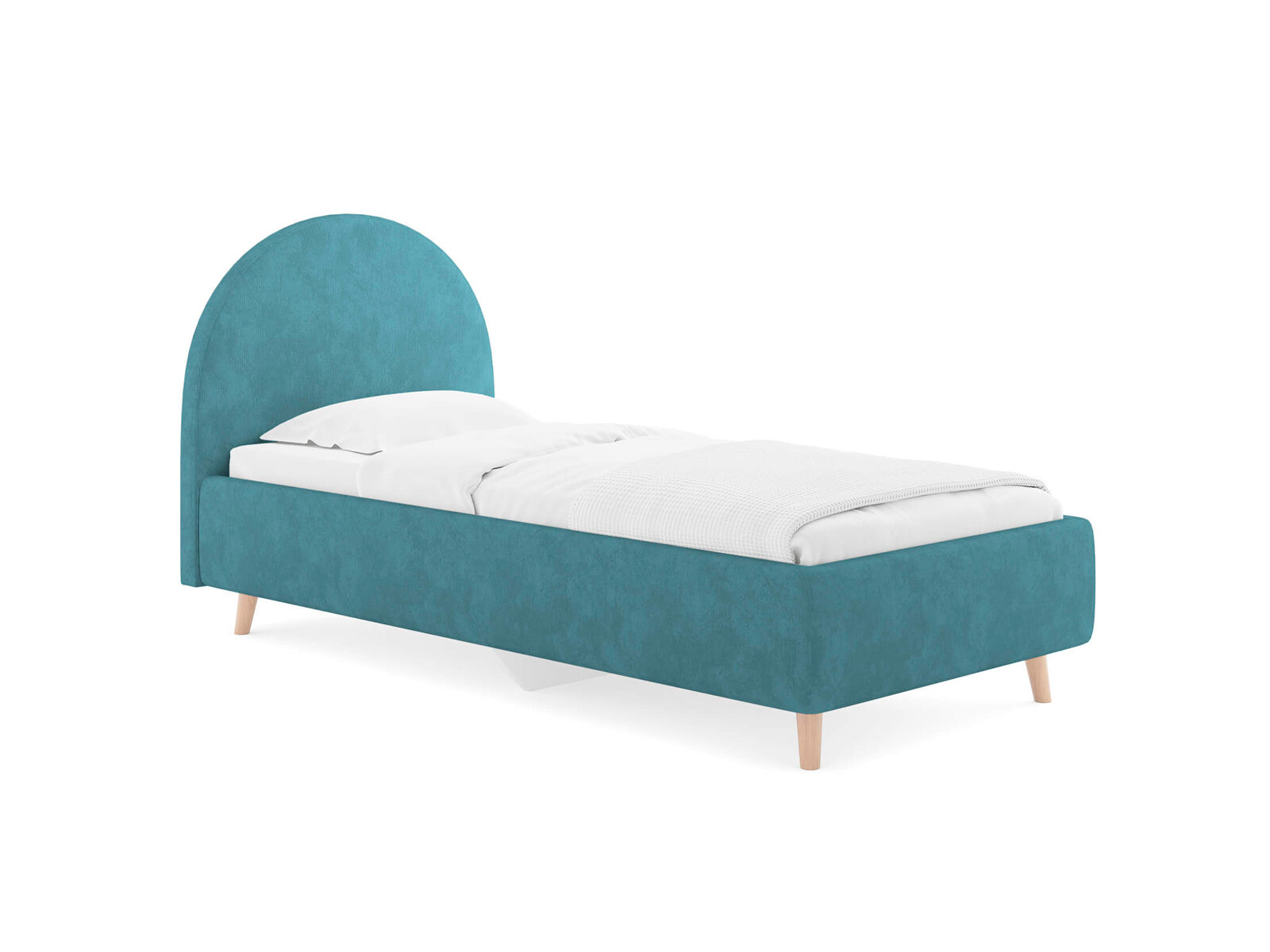 Подростковая кровать с закругленным изголовьем — это идеальное решение для создания уютного и стильного пространства в комнате. Элегантные линии изголовья не только придают изделию изысканный вид, но и добавят мягкость в интерьер, создавая уютную обстановку. По умолчанию задняя спинка кровати обивается тканью, что позволит расположить кровать не только к стене. Основание кровати на высоких деревянных ножках. Благодаря увеличенной высоте позволяют осуществлять легкую уборку под кроватью, даже с помощью робота-пылесоса. При необходимости кровать может быть укомплектована трансформируемым основанием Aquarius.