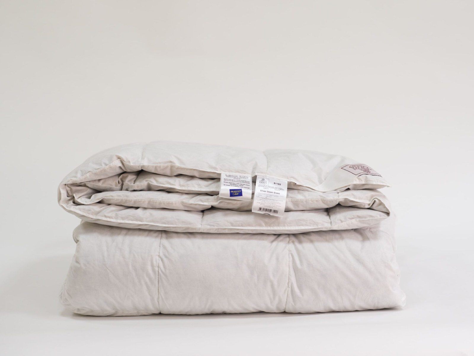 Изделия коллекция GRASS SILVER DOWN LINE наполнены серым пухом гусей Тулузской породы с добавлением мелкого перышка, что позволяет получить объемные подушки и пушистые одеяла. Чехлы выполнены из немецкой ткани, прошедшей финишную обработку SanProCare® Sensitive, которая позволяет материалу усиленно поглощать и отдавать влагу. Ткани сертифицированы по OEKO-TEX® Standard 100 – международному стандарту безопасности текстильных изделий. Ткани, отмеченные маркировкой «Bramscher Tuch» – это безусловный знак качества и великолепный результат работы специалистов из города Бра́мше в Германии. Высочайшей оценки требует буквально все: от высококачественного сырья и тончайшей пряжи до заключительной эксклюзивной отделки тканей. Сочетание тонкой ткани и серого пуха придают изделиям серебристый оттенок, что легло в основу названия коллекции.