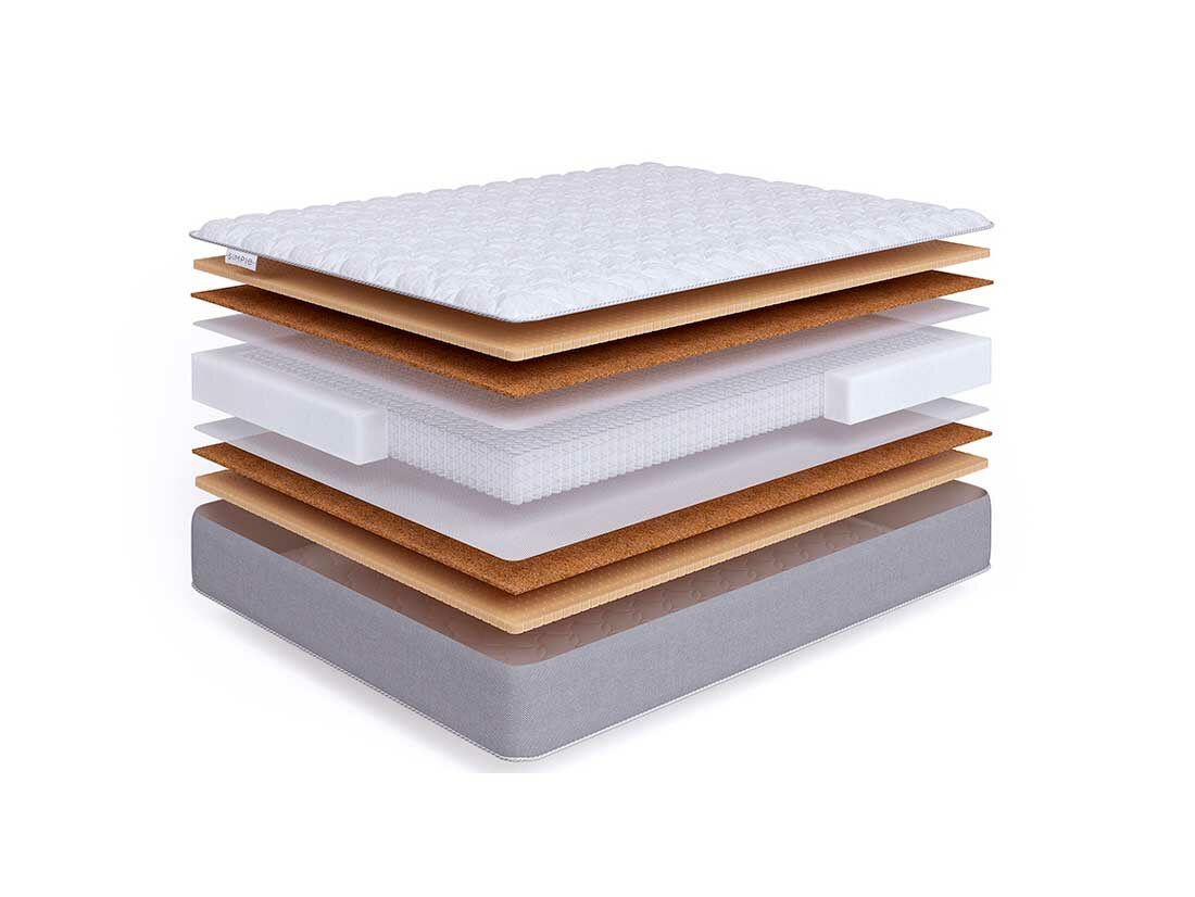 Натуральная кокосовая койра состоит из кокосовых волокон, пропитанных латексом. Она придает матрасу жесткость и упругость. Кокосовая койра также имеет превосходные ортопедические и эксплуатационные свойства.