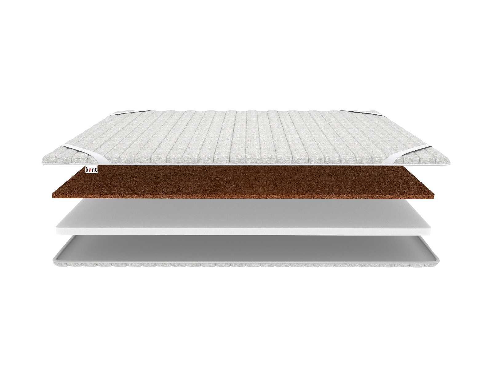 Поверх пены Kant foam ложится койра – жёсткий наполнитель, обладающий ортопедическим эффектом. Он подстраивается под изгибы спины и обеспечивает ей правильную поддержку. Основой койры служит натуральное кокосовое волокно.